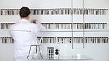 In the accompanying video work, Rubinstein and Daum Marks document a process of research, extraction, and preservation of that fear. In the video’s first part, the anxiety-laden droplets pass through an extraction system. A diligent lab technician processes the greyish liquid through evaporation and heating, ultimately yielding a pitch-black essence.
